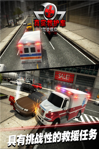 1、在虚拟的3D城市里,会有各种意外发生,玩家驾驶救护车进行救人任务;