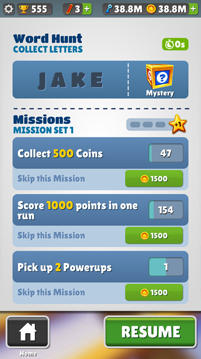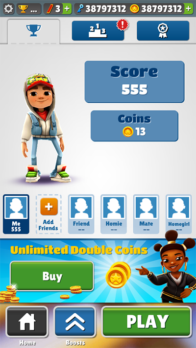 游戏中,屏幕将呈现一个无限延续的地铁轨道,玩家就是需要在这个轨道上不断奔跑,避开各种障碍物,收集时下最流行的生活必备品,如金币、钥匙、钻石、T恤等,以此来获得更高的游戏分数。
