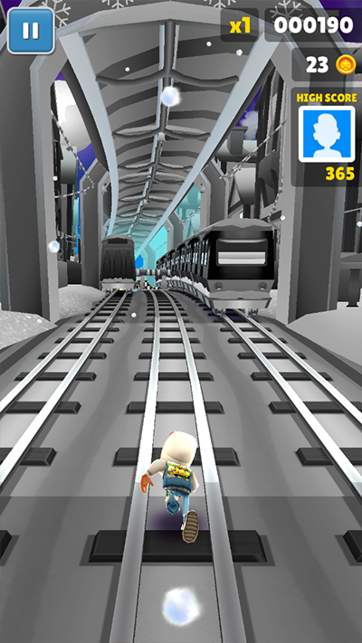 在过程中,你还可以通过使用特殊技能、乘坐滑板、飞天跳、滑行、转弯等各种操作来获取道具和躲避陷阱,让你的游戏过程更加精彩。注意,在游戏中你需要时刻保持警觉,一旦被车厢、障碍物、警察等物品跟踪捕捉到就会游戏结束。