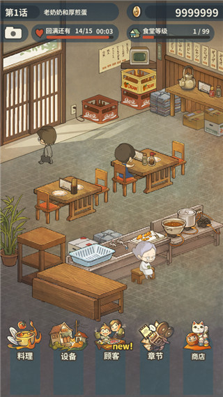 在游戏中老奶奶为形形色色的食客制作料理,获得金币。单一商品重复制作能够提升料理等级从而解锁新的料理。