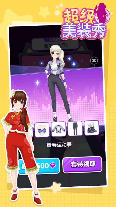 1、开局每一关都有特定的比赛主题,如第一关主题:学校怎么穿?在指定的比赛主题里,玩家需要在女孩儿们走台过程中,选择合适的装扮、服装以及其他符合主题的搭配来赢取比赛的胜利。