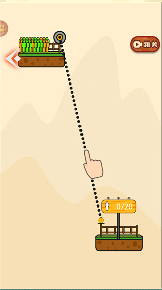 直接下拉将绳索的另一端固定在下方的橙色区域,点击屏幕,让小人滑下来;