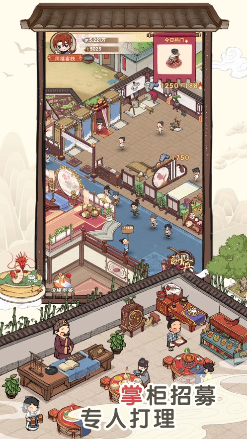 为了提高您的声誉,获得更多的业务,我们可以为您提供更多的财富升级;拓展客栈,建立商圈,探索多元产业,带你走向人生巅峰;经营自己的客栈,翻新装修不同的布局,吸引文人雅士前来。