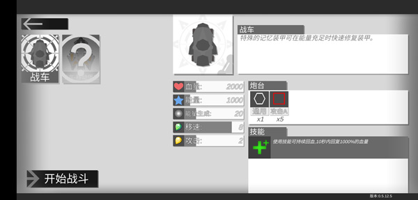 然后是A1,这小东西看着挺别致但是攻击是自动锁定的,锁头锁头锁头重要的事情说三遍。然后技能是可以积攒8次的突进,在前期可以帮你躲避坦克或者猎手飞机的追踪导弹,后期防止虫王封路,但是有可能乌龙的是残血你想跑一个突进出去跑到敌方坦克脸上了然后当头一炮直接下辈子见,或者就是撞到弹幕那也是白给。再说说缺点,A1只能前进,方向由右边轮盘控制,需要多操作习惯一下,再一个就是身板太脆,最后就是格子实在太少,以至于可能到了后期也会出现输出的乏力。载具先说这俩,其他的等玩熟练了再去挑战也不迟。
