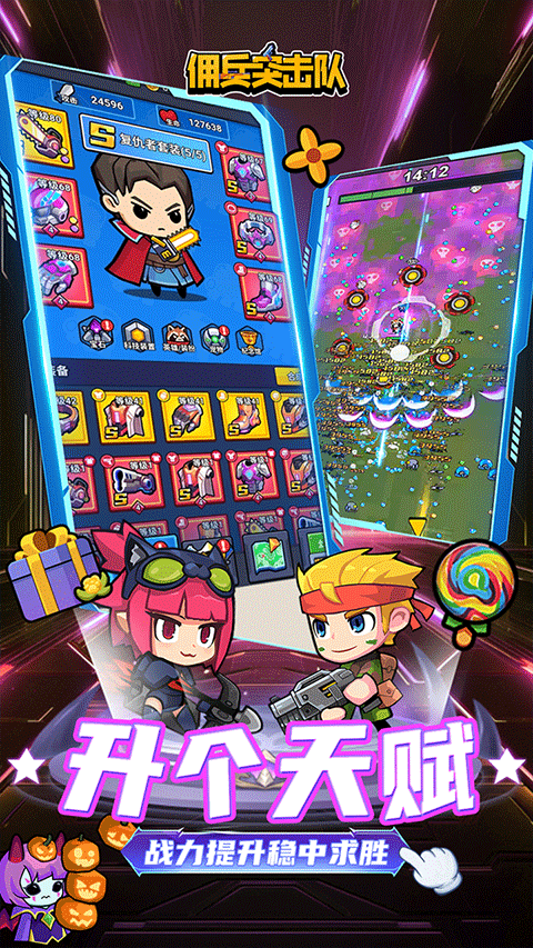 佣兵突击队手游是一款独具特色的吸血鬼肉鸽割草类游戏,其总体玩法特别的休闲有趣,进入游戏后你将会化身为一名极具潜力的佣兵,与其他幸存者一起拿起武器,战胜危险的敌人,在你游戏期间千万不能出任何的小差,因为敌人的力量依旧强大,稍不留神就会让自己陷入险境! 在这种艰难时刻,想尽办法,生存下去吧,玩起来趣味性十足,适合各个年龄段的玩家们进行畅玩。