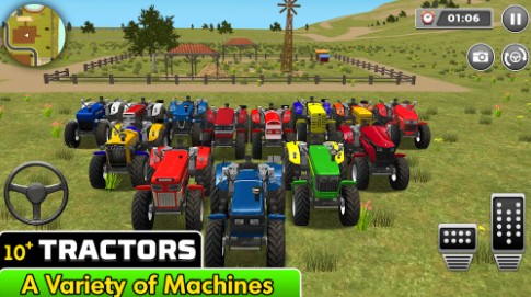 1、提供了多种不同型号和功能的拖拉机供玩家选择,包括小型手扶拖拉机、中型轮式拖拉机、大型履带拖拉机等。