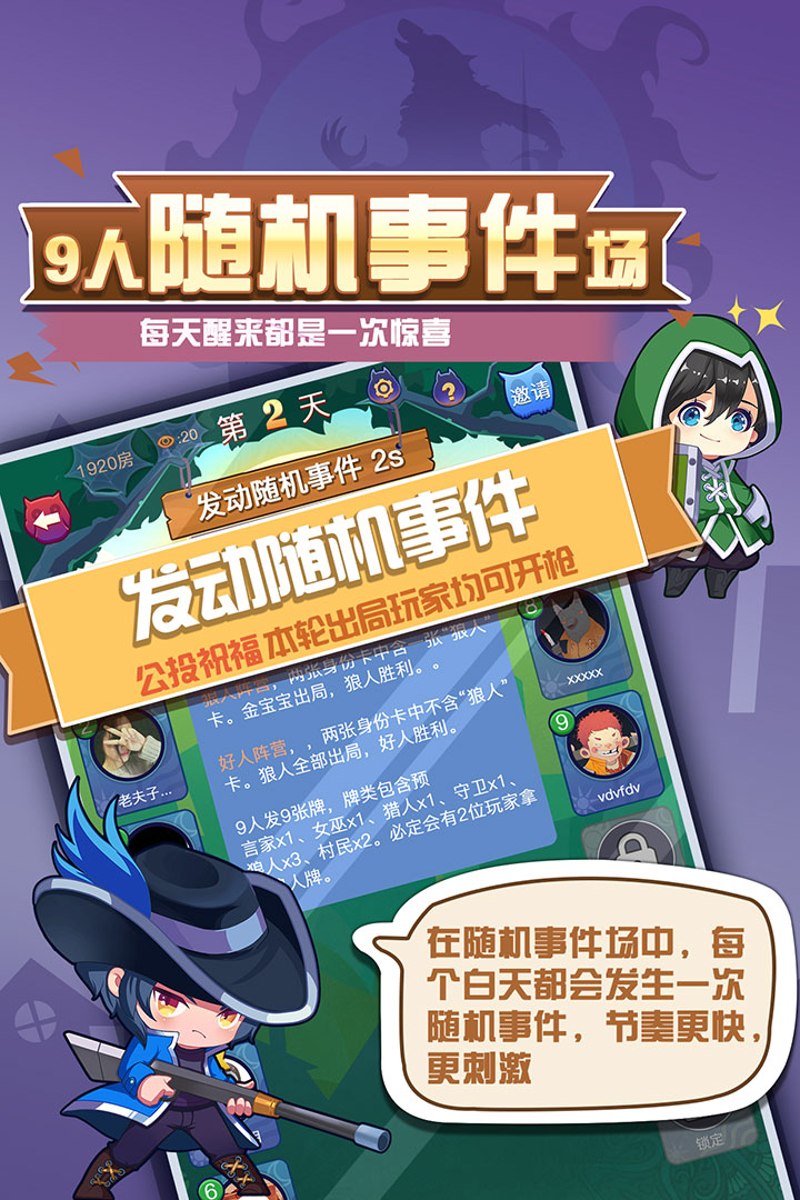 【双身份全新玩法】体验既是狼人身份又是好人身份的双重的快感,金水不再永远都是金水 ,还会发生预言家帮着狼人阵营说话的情况。