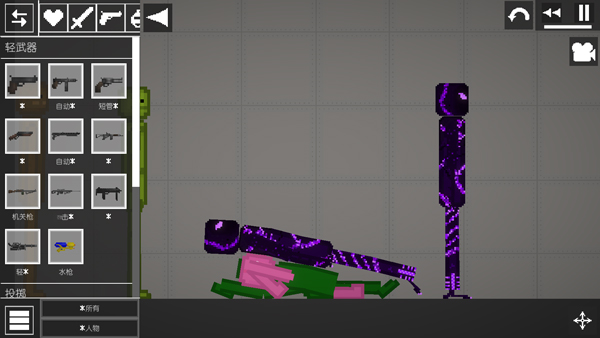 同时玩家可以发挥自己的脑洞对关卡中的角色进行破坏,还可以对任意场景进行切换,道具种类非常丰富,比如手枪、冲锋枪、巴雷特、加特林等,还有场景道具这里也全都有,玩家可以自定义使用这些道具进行搭配。