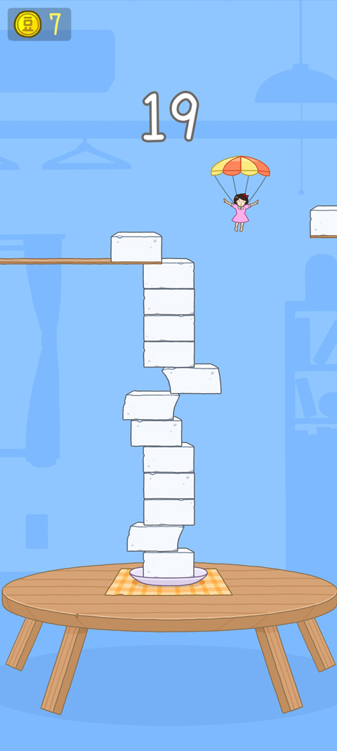 虽然游戏上手十分容易,但是玩到高分并不容易,玩家需要操纵女孩不断的跳跃并堆积豆腐块,最后结束后堆积的豆腐块越多,得分才能越高。