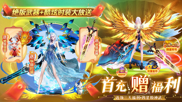 2、酷炫羽翼光武神兵,个性装扮秀全场,百变时装奇幻骑宠,战力爆表助仙途