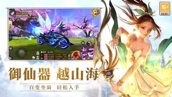 2、【拉风修仙 个性百变】天生炫酷神翼,上天入地自由飞行;洪荒巨鲲、魔幻机甲、鬼魅妖灵,粒子世界珍宝集结,百变坐骑灵仆任你选择!还有真心话大冒险、甜蜜姻缘、灵仆飞升、身外化身……超多趣味玩法等你体验!