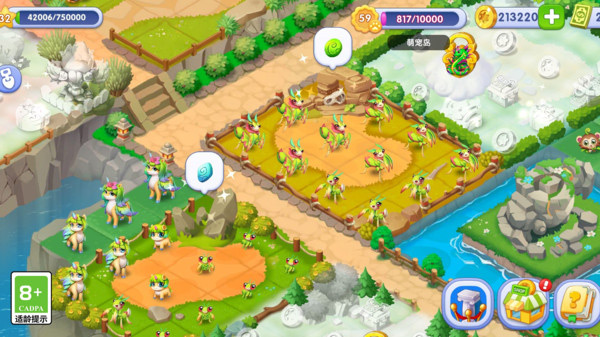 精灵世界里除了月障丛生的幼植园,还有一片神秘萌宠岛,岛上的神奇物种多达60个,在这里,萌宠环绕,你唯一需要做的就是将萌宠们合并升级成更高等级,岛上的宠物们很挑食,只吃火龙果,因此需要你通过各种途径收集火龙果种子,并将种子合并成树,等果实成熟时喂养宠物,是不是很轻松快乐呢。