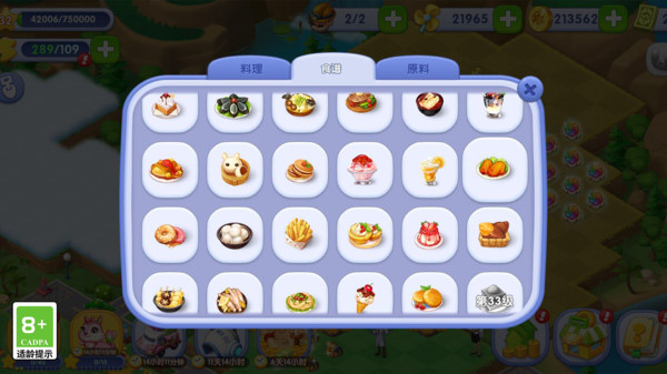 2、点击右侧美食,打开美食制作,制作原料有梦梦花、魔力糖;
