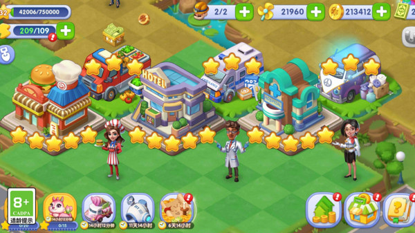 游戏内主要采用三合一、五合二的方式来合成物品,合成方式轻松便捷,游戏新手指引简单易上手,当合成物品的等级越高,获得的奖励就越丰富,而你需要通过合成来触发疗愈屋的建造,清除月障,恢复精灵世界的生机,创建理想家园。