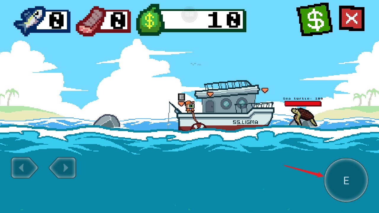6、在这里点E投喂给乌龟我们刚刚挂好鱼鳞的鱼。