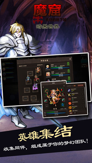 魔窟无尽的地下城暗黑世界是魔窟无尽的地下城续作,讲述前作中的勇者,在迷宫中险些迷失了自我的故事,在本作中剧情把时间拉回从前,玩家将伴随勇者的先辈们一起进入迷宫探险。魔窟无尽的地下城暗黑世界关卡丰富,同时更有各具特色的宠物、符文、装备、英雄角色等多样特色系统玩法,让你百玩不厌,此外游戏无需联网,不用注册账号,让你随时随地畅玩无阻,喜欢地下城冒险类角色扮演游戏的玩家赶紧来本站免费下载体验吧!