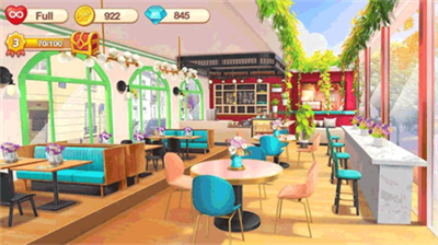3、餐厅扩展与装修:玩家可以通过赚取金币扩展餐厅,增加新的厨房设备、座位、装饰等,提升餐厅的盈利能力;