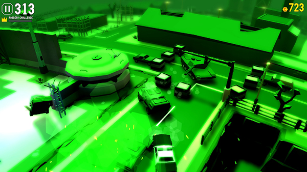 每辆车还有两个挑战,两个挑战不能同时完成,解锁第二个挑战则需要完成第一个挑战。挑战又有许多类型,比如生存一段时间,撞倒路灯,在濒死状态下生存一段时间,在空中滞留一段时间等。每完成一个便会在车辆的下方显示一个黄色的皇冠。当皇冠积累到一定的数量时,还会给予金币奖励。