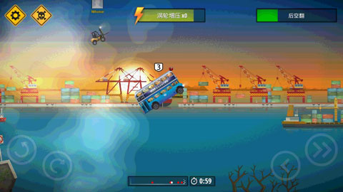 作为一款单机赛车对抗游戏,玩过《登上赛车》的朋友对于这款游戏的玩法都还是比较熟悉的,游戏主要包含触控和遥感两大操控模式,具备适合新手、老手的许多模式挑战,以触控模式为例,左侧主要控制赛车的平衡,右侧控制速度,加速刹车一览无遗,同时积累一定的能量后还能进行涡轮加速,虽然游戏没有实质性的终点,但只要跑的比其他选手快,第一就非你莫属了。