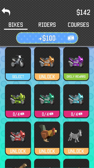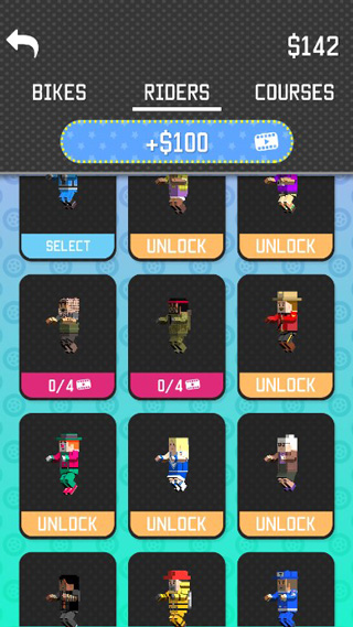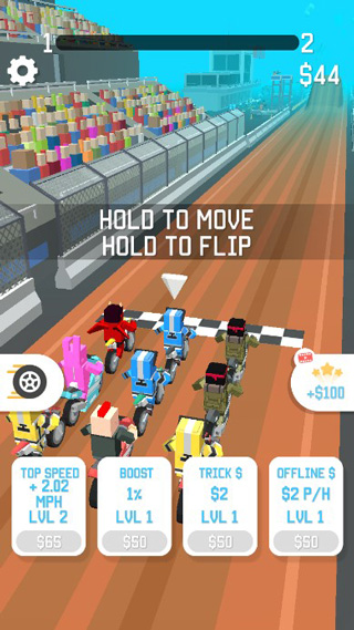 Tricks是一款像素风格的赛车竞速类游戏,游戏中玩家将驾驶自己心爱的摩托车进行越野特技挑战,在此期间会有各种各样的障碍物和凹凸不平的山地环境阻碍着玩家的前进,你要小心控制赛车的速度以及翻转次数,有效的避免头着地所带来的危险状况,能够让你在比赛中获取一个较好的排名次。游戏中还具有清晰可爱的卡通风格,简单轻松的操作方式,在这里还以摩托车的特色强化为核心玩法,玩家将通过挑战获取的钞票用以升级摩托车的速度、操作性以及其他类型的功能性辅助系统,甚至还可以解锁更多摩托车的类型,或者是其他坐骑哦。除此之外,在Tricks中还有多款人物角色和主题场景可以解锁,翻越重重障碍,体验极致炫酷特技动作,喜欢的玩家就快来接受挑战吧。