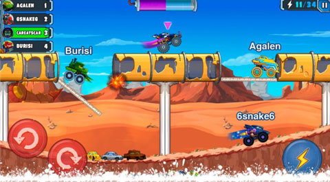 疯狂车吃车4是一款卡通休闲2D横版赛车竞速游戏,也是厂商继《疯狂车吃车3》之后推出的一款平衡赛车游戏。该游戏完美延续前作独到的玩法,无论是在画面、玩法上也有了一定的革新和优化,包含大量的赛车可供玩家解锁,丰富有趣的关卡挑战,休闲有趣的赛车控制,搭配上各种强势的技能和辅助武器,激起你的肾上腺素,超越其他赛车,吃掉主打你的障碍,冲刺成为最终的道路王者!