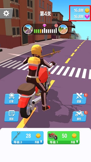赛车粉碎游戏是一款非常好玩的竖版竞速动作闯关类手游,该游戏低模构造的摩托竞速世界有着与传统《暴力摩托》十分相似的玩法体验,游戏核心模式为闯关制,在接下来的摩托竞速比赛中,你不但要把控驾驶方向,注意躲避沿途的障碍物,还要时刻紧盯其他对手谨防对手攻击。同时,在赛车粉碎游戏中接连的比赛后,你会获得大量金币和钻石,并且武器系统和坐骑系统也将陆续开启,玩家可从中挑选自己喜欢的武器和各种款式的摩托车来完成比赛。另外,在比赛进行过程中可靠近对手使用武器进行对战哦,十分有趣,日常休闲,缓解压力,这款手游都是非常不错的选择,若有感兴趣的朋友,不妨下载试试吧!
