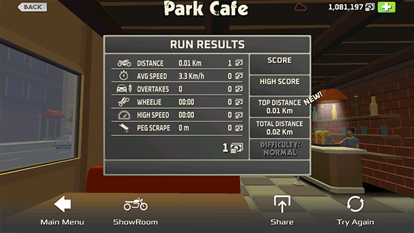 同时游戏中还为玩家准备了多种玩法模式,例如限时模式、竞速模式等等,每种玩法都对玩家有很大的考验,充分展现自己的技术,在高难度的赛道中秀出各种炫酷的操作,感受畅快的竞速之旅。另外咖啡厅赛车手游戏的操作也是简单易上手,通过重力感应来控制行驶方向,加速以及刹车来控制摩托的行驶,相信玩过赛车类游戏的小伙伴都能很多的上手,快来下载吧!