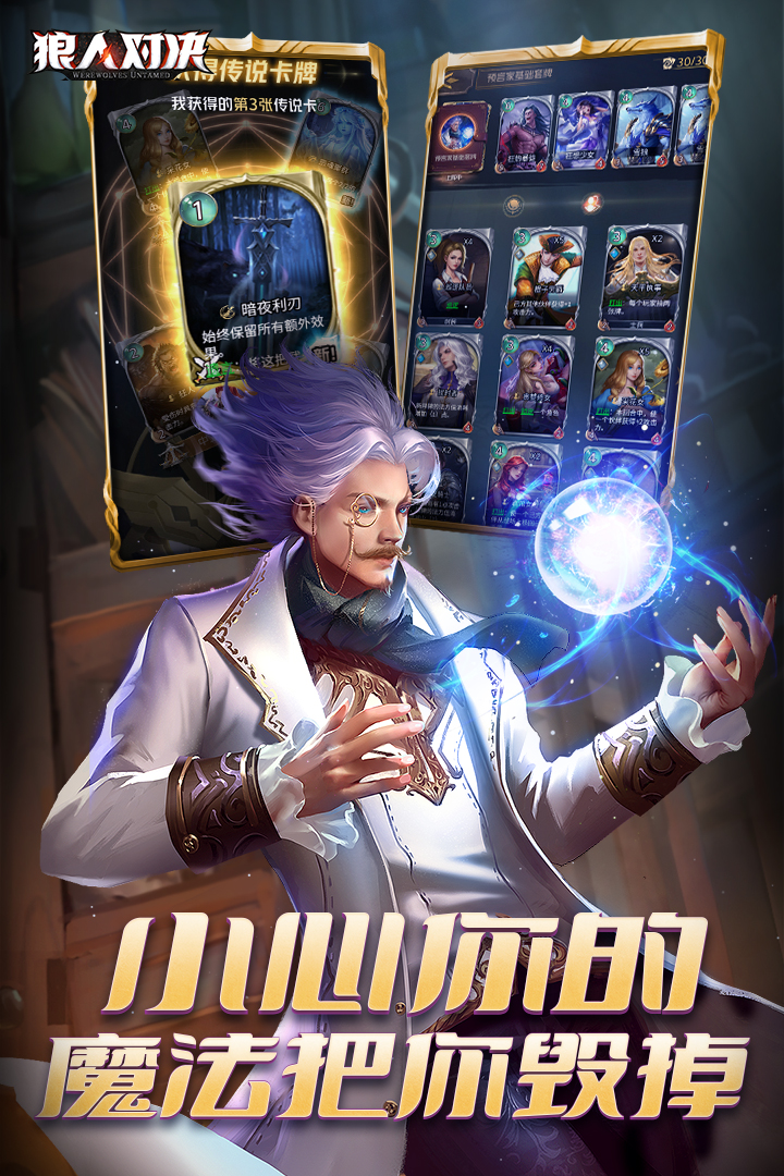 神民狼超多卡牌,精美原画,精致配音;颜值与实力共存,收集卡牌,组建卡组 - 通过对经典桌游狼人杀的研究,我们为《狼人对决》设计了上百张卡牌。神、民、狼三大类卡牌可同时存在于你的牌组之中,仔细研究你所拥有的每一张卡牌,组建属于你的最强牌组,击垮你的对手!