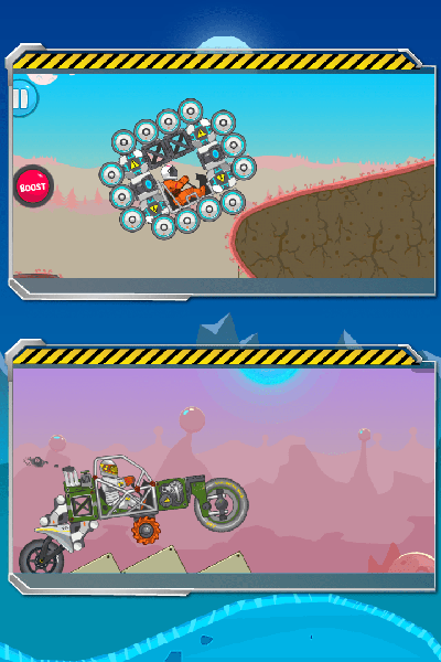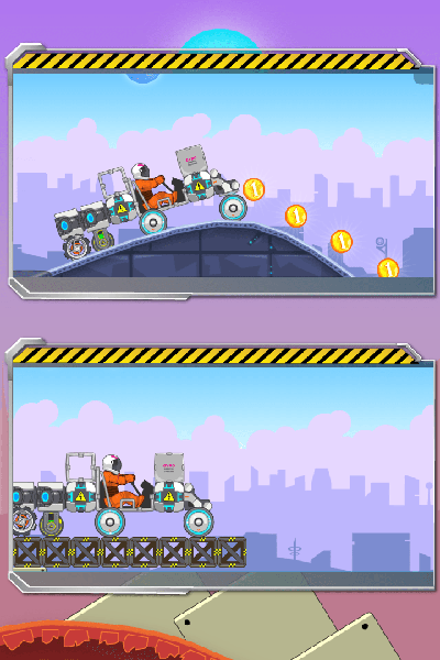 暴爽疯狂赛车 内置菜单安装入口允许玩家以自制赛车的形式探索遥远的行星山。因为交通工具是由玩家自己设计的,成功的关键取决于你!在赛车上安装喷气发动机、反应堆、车轮或各种升级的赛车配件,为陡峭的山峰和异国情调的行星之旅做好准备。在低速行驶时要小心——你可能会在旅途中遇到各种危险。也有燃料短缺、车轮在崎岖斜坡上磨损和驾驶员宇航服展开的情况。