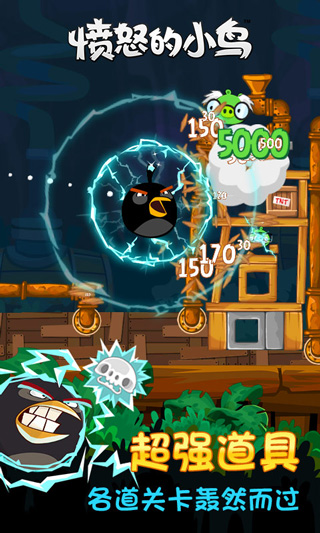 虽然相信大家对它的玩法已经相当了然,不过还是允许小编在罗嗦一句。通过弹弓拉动小鸟,将远处的猪头全部打掉即可通关。玩家需要做的是运用尽可能少的小鸟将全部的猪头干掉。除了普通的小红鸟之外,还有各种带有技能的小鸟,点击屏幕即可释放。这次的版本中,全新的炸弹黑鸟将会登场,它们拥有强大的地磁波力量,释放威力无比的冲击波,绝对是一名强力好伙伴。