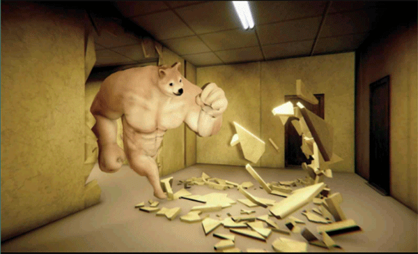 4、当然这期间并不简单,我们每次开门都会遇到不一样的场景,可能是一堵墙,也可能是一只大的柴犬获得一只猴子;