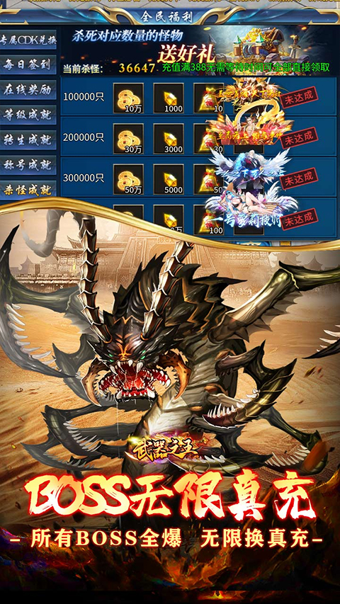 3、游戏内还有福利活动进行,击败boss就掉真充卡;