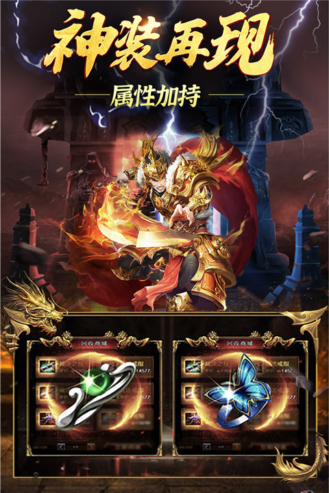战神级别以下装备回收绑元,黄金级以上装备回收获得元宝!