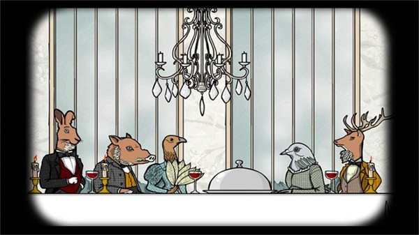 大堂猫头鹰照片下方有个保险箱,对应五个钥匙孔,钥匙在猫头鹰先生背后的钥匙板上,线索是动物房间里纸质文件上的印章(鹿是1号钥匙对应第四个,兔子是4号钥匙对应第三个,鸽子女士是5号钥匙对应第二个,野鸡女士是3号房间第一个,野猪先生是2号房间第五个】