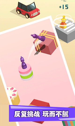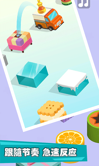 4、保持节奏:这款游戏主要考验了玩家对于手感的把控,所以在连续跳跃中保持节奏十分重要,也是可以连续跳到方块中心点的关键。