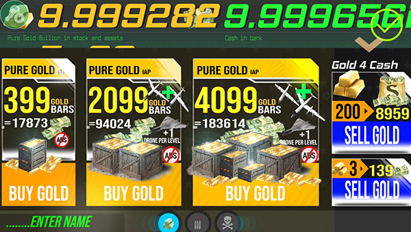 2、进入商城界面,包括【金币】、【弹药】和【核弹】,选择需要的类型点击【BUY】进行购买,建议多购买核弹武器威力大,范围广然后选择右上角【打勾】图标,