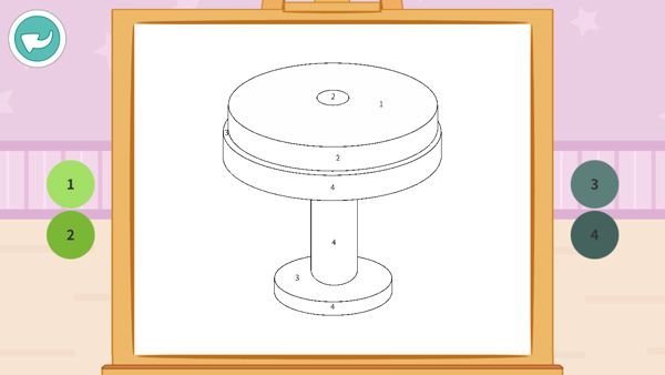3、点击一个虚线图形,玩家需根据数字填入相应的颜色;