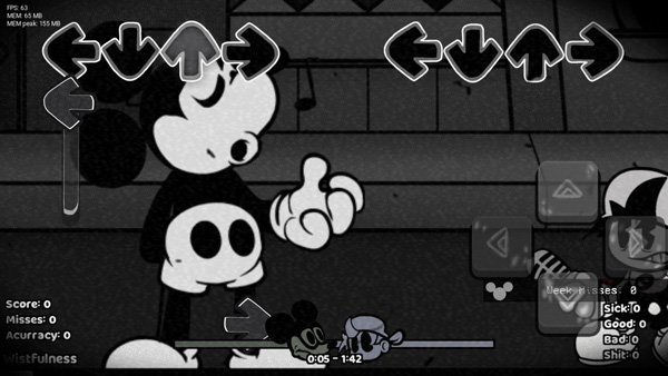 米奇笑的比较诡异,上下动过一个循环后闪一下脸。变身后,与之前的happy阶段那个米老鼠模样差不多。唱的过程中会闪出一张米奇融化的脸,bf可能会变成全身黑。脸部变成满脸番茄酱的米老鼠不断抖动。