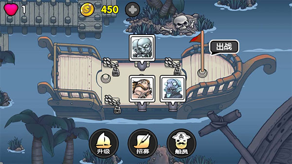 7、在航海赏金猎人游戏中除了战斗和招募船员以外,玩家还需要为船升级火力、射速、射程、血量等属性来提升战斗力,战胜更多敌人