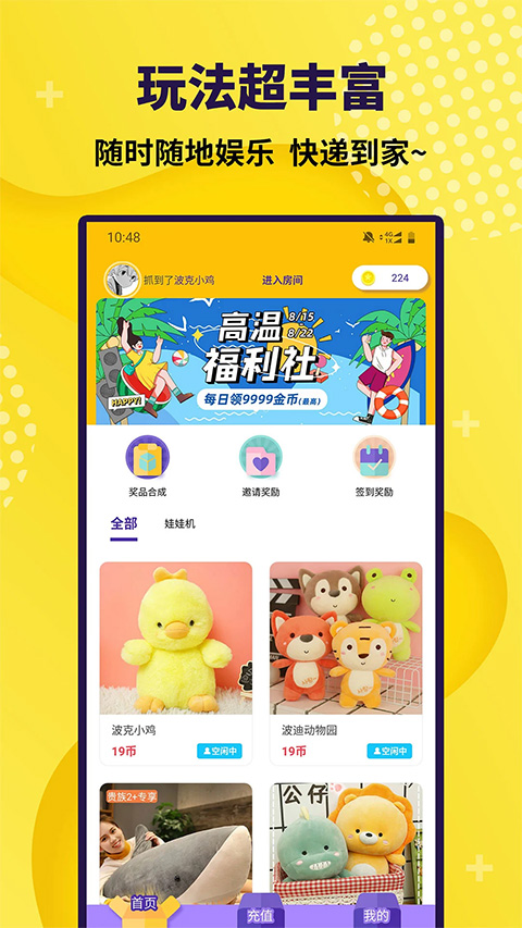 免费游戏币,免费包邮,全场每日游戏币免费送,快把娃娃抓回家。