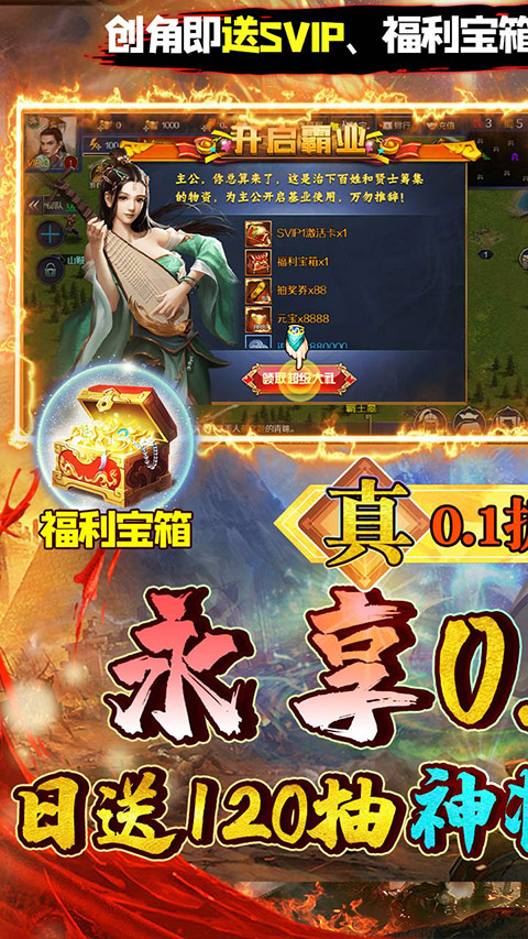 4、丰富的福利活动:游戏为玩家准备了多种福利活动,如创角送SVIP、福利箱、抽奖券等,助力玩家快速成长,提升游戏体验。