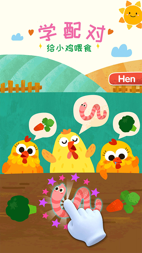 动物农场里的小鸡饿了,你能找出小鸡喜欢的美食喂给它吗?接下来去清理羊毛吧,拿起动物洗澡刷,把绵羊刷干净。帮奶牛赶牛蝇,喂它吃牧草。击退胡蜂,保护蜜蜂!宝宝们,你的农场动物能不能健康成长呢?就看你的咯!