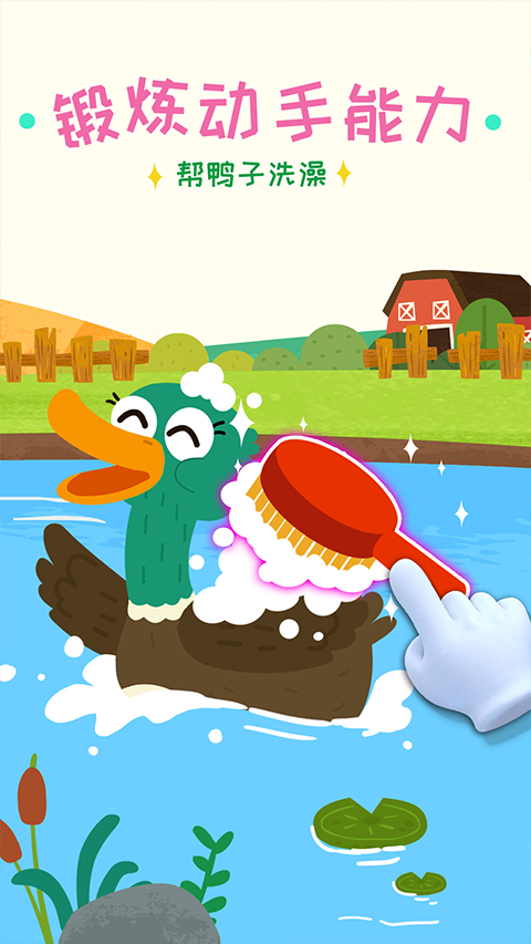 鱼塘里的鱼儿、螃蟹、龙虾长大了,使用农场特制的网兜捕捞这些水生小动物吧。再动动小手,去农场挤牛奶。拿起剪刀咔嚓咔嚓,剪下白花花的绵羊毛。操作风扇、收音机等机器,让母鸡安心下蛋。鸭妈妈生孩子了,把它们装扮一下,送给邻居当宠物吧!