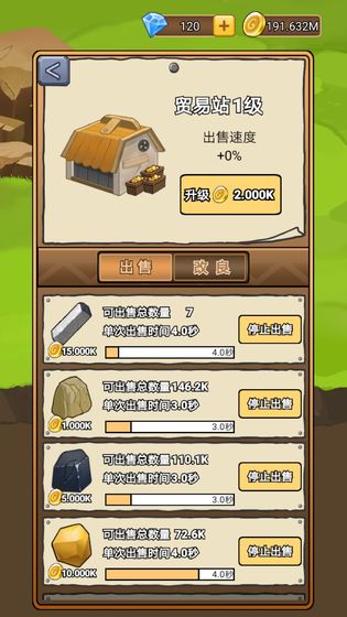 7、有了可供出售的加工物可以在贸易站里出售以赚取现金,通过对贸易战的升级能增加出售速度。