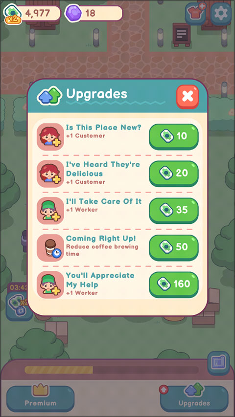我的甜蜜咖啡店手机版是一款十分有趣的经营模拟游戏,英文名叫做My Sweet Coffee,采用了动漫的画风,画面清晰精美,音效逼真,给玩家带来身临其境的感觉。玩家在这个卡通世界中将化身成为一家咖啡店的老板,每天都会有客人前来买咖啡,你需要按照他们的要求端上不同口味的咖啡。