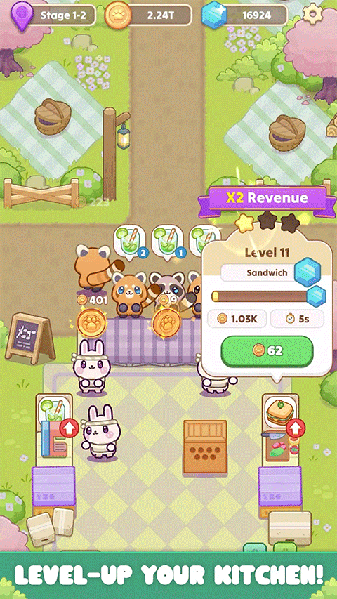 舒适咖啡馆手游也叫Cozy Cafe是一款卡通风格的模拟经营游戏,在这个令人愉快的游戏中,您将经营各种餐厅,招募更多可爱的动物服务员和厨师团队为饥饿的顾客提供美味的食物。同时在提供美食时你还需要收集更多货币来升级您的美食站,以及购买新的装饰和道具,进一步改善咖啡馆的运营和服务质量。