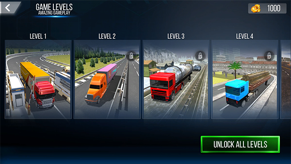 1、下载安装好未来卡车模拟器正版,进入游戏选择一关开始游戏,你需要完成前面的关卡才能解锁下一关。
