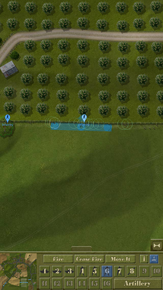 2、很多新人都不知道该如何让一些攻击单位开火,其实很简单的,点five(开火)然后找到目标,长按目标,会有一个类似于狙击枪瞄准器的东西,等它缩到最小就可以松手攻击目标了。坦克,装甲车,炮兵操作都一样,炮兵炮弹省着点用。