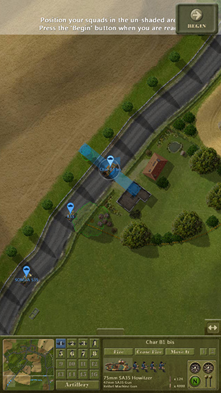 12、遇到很多房子很猛的火力输出怎么办?可以用炮兵攻击,也可以叫火炮支援,点artillery、选择high xplosive 点完直接长按目标就可以了。(虽然不准,但也挺有用的,攻击太慢,到后面直接连续发射好几发炸一片)。如果火炮轰完之后仍剩下部分残余,可以叫几辆坦克直接上,步兵躲在房内,一起攻击,过一会儿敌方火力减弱,坦克上去贴脸打,步兵直接突,没死的守军投降。