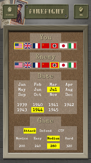 玩家可以选择不同类型的士兵、坦克、飞机等来组成自己的军队。
